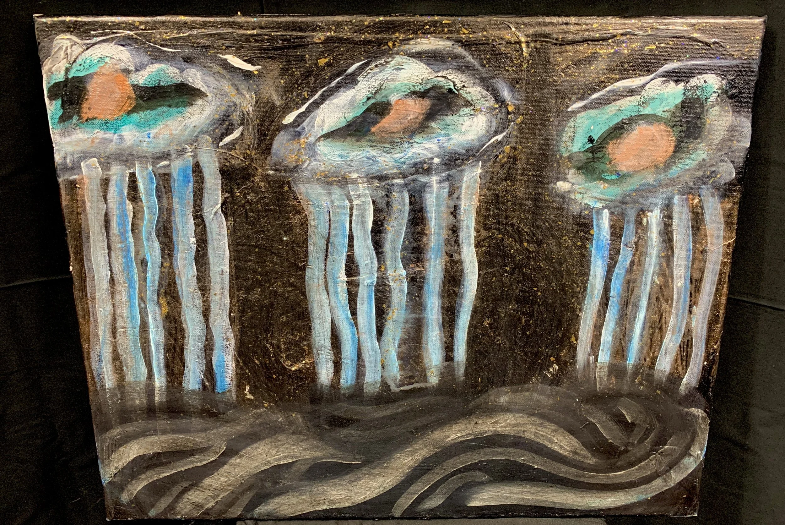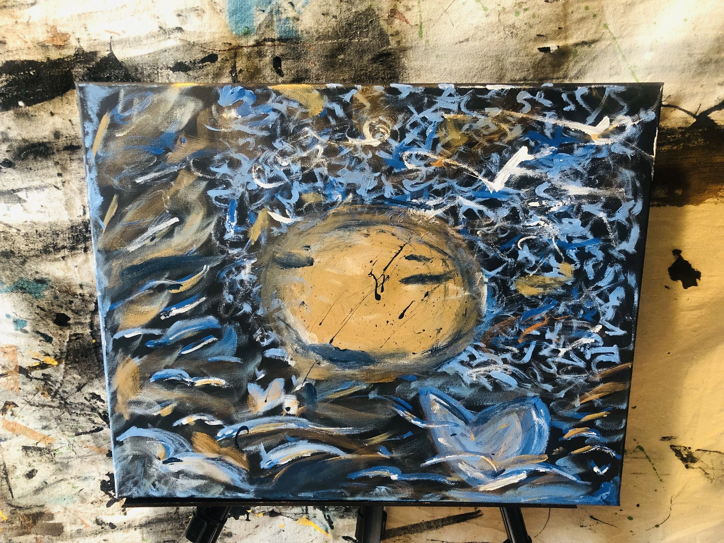A collection of eight powerful, emotional abstract paintings on a journey through loss, self-love, clarity, and forgiveness. The Blue Series by is a deeply personal and transformative journey for the artist. The series, which began in 2021 and ended in 2022, was inspired by events in Rainy's own life. Each piece in the series conveys a sense of vulnerability and authenticity, inviting the viewer to consider looking their own uncomfortable experiences and emotions.